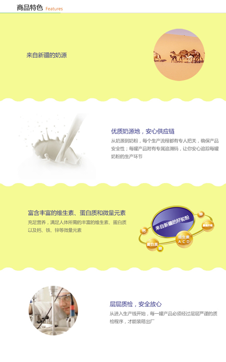 做駱駝奶粉為什么選擇那拉乳業(yè)? 1、奶源地工廠,駱駝奶源豐富; 2、全新自動(dòng)化生產(chǎn)設(shè)備,品質(zhì)保證; 3、奶粉生產(chǎn)中先進(jìn)干濕法生產(chǎn)工藝,用嬰幼兒的生產(chǎn)標(biāo)準(zhǔn)嚴(yán)控產(chǎn)品; 4、擁有國(guó)家許可的特色乳品(駱駝奶)生產(chǎn)許可證; 5、位于那拉提核心景區(qū)旁,周邊旅游配套資源豐富;